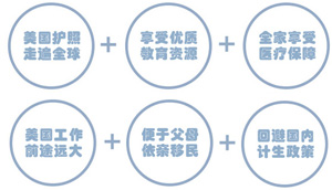 对于美国宝宝的父母而言,不仅能回避国内计生政策,更可在美国宝宝成年后通过依亲移民方式移民美国。